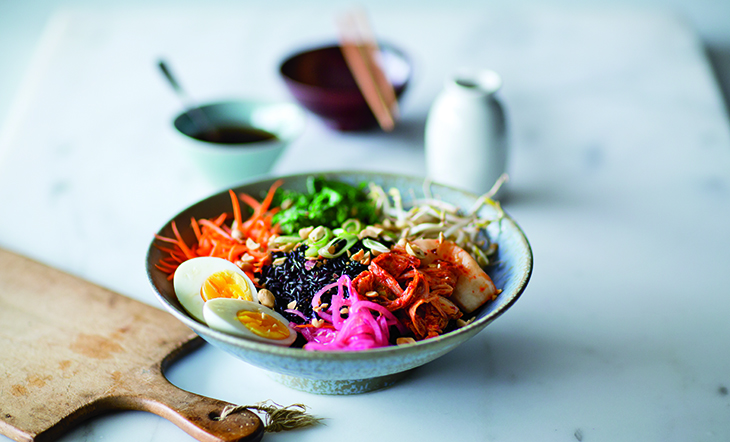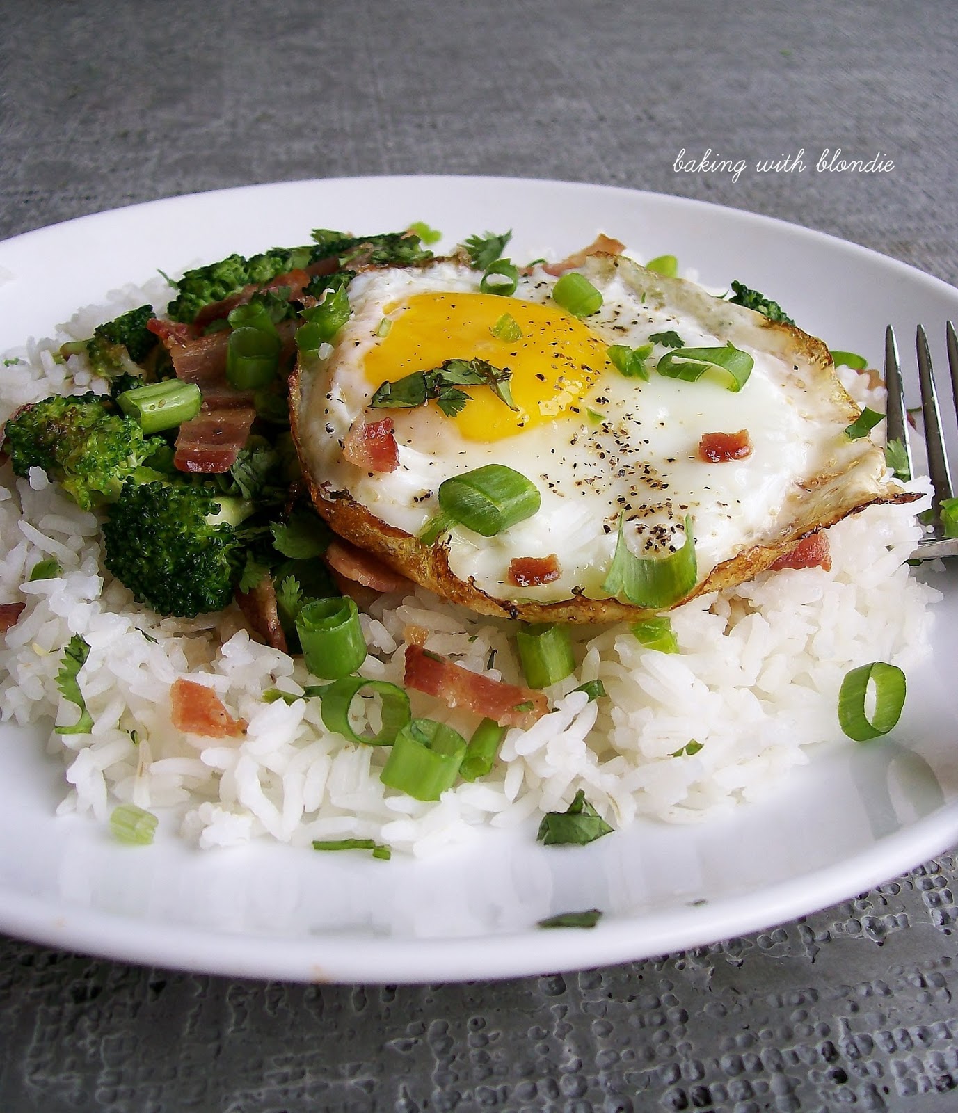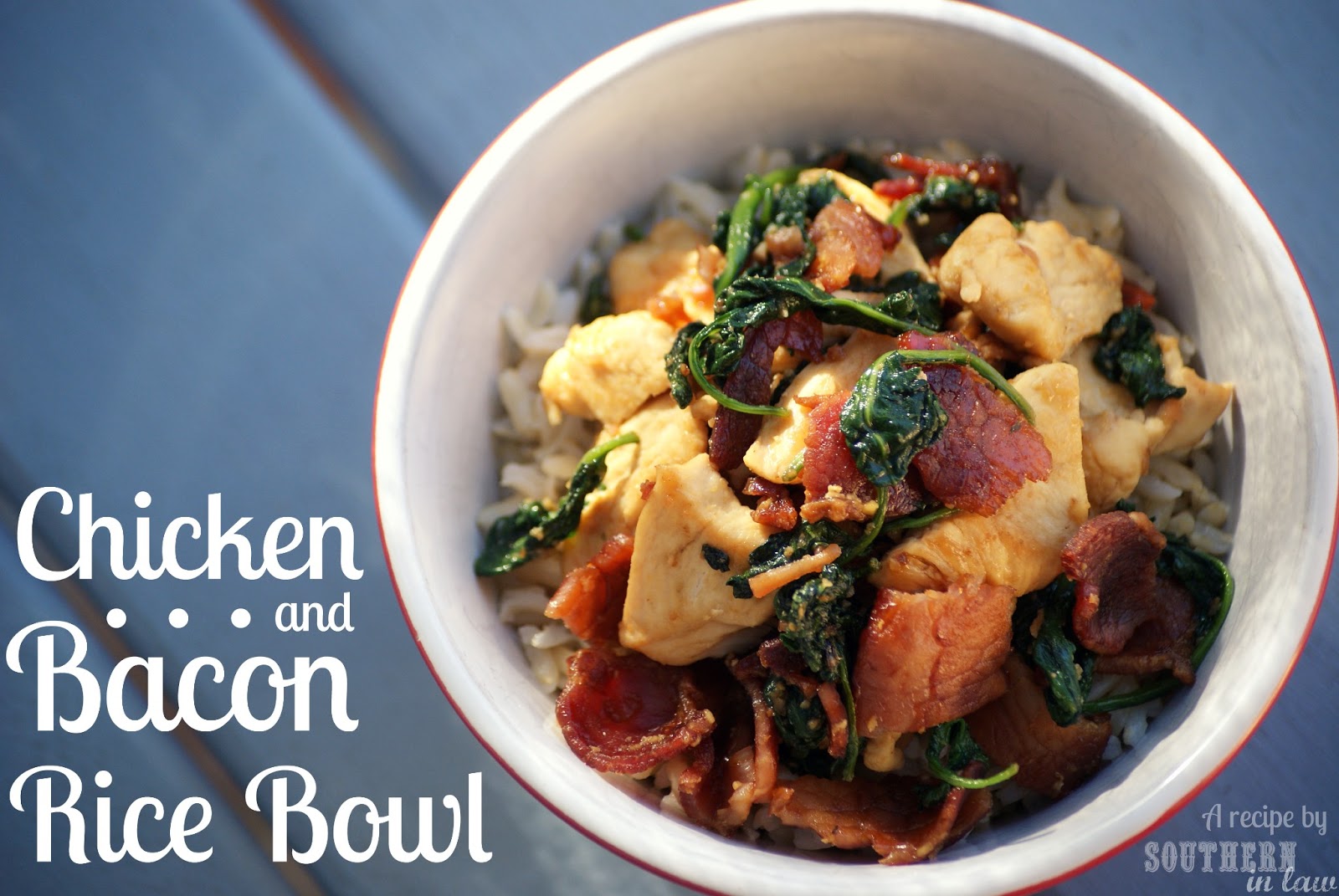 Bacon Rice Bowl Bacon Rice Bowl / Add 1tbsp bacon bits, 1tsp maple syrup (in a condiment bottle), dried pepper, and hot sauce (in a condiment bottle) to taste.
