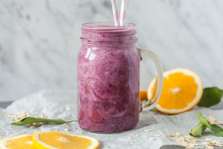 Blueberry Banana Orange Juice Smoothie Blueberry Banana Orange Juice Smoothie - A healthy blueberry banana smoothie with almond milk, chia, and hemp seeds.
