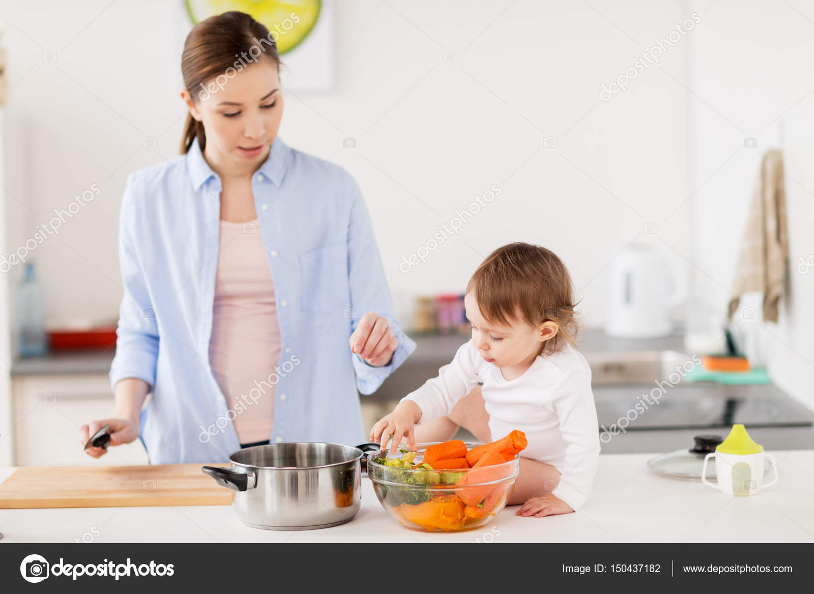 Happy Mother And Baby Cooking Food At Home Kitchen Stock Photo Image By C Syda Productions 150437182 - You can add a pinch of salt to taste and turmeric to this mixture.cook over a medium flame and bring to a boil.