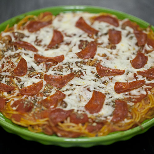 Deep Dish Spaghetti Pizza - Mix eggs and milk thoroughly.