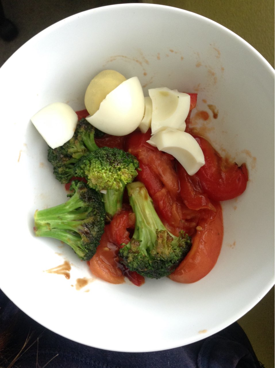 Lunch Today Broccoli Red Bell Pepper Tomato Stir Fried With Hoisin Sauce Also A Hard Boiled Egg For Protein Any Comments Fooducate Diet Motivation - Scrambled eggs with tomatoes, salmon.