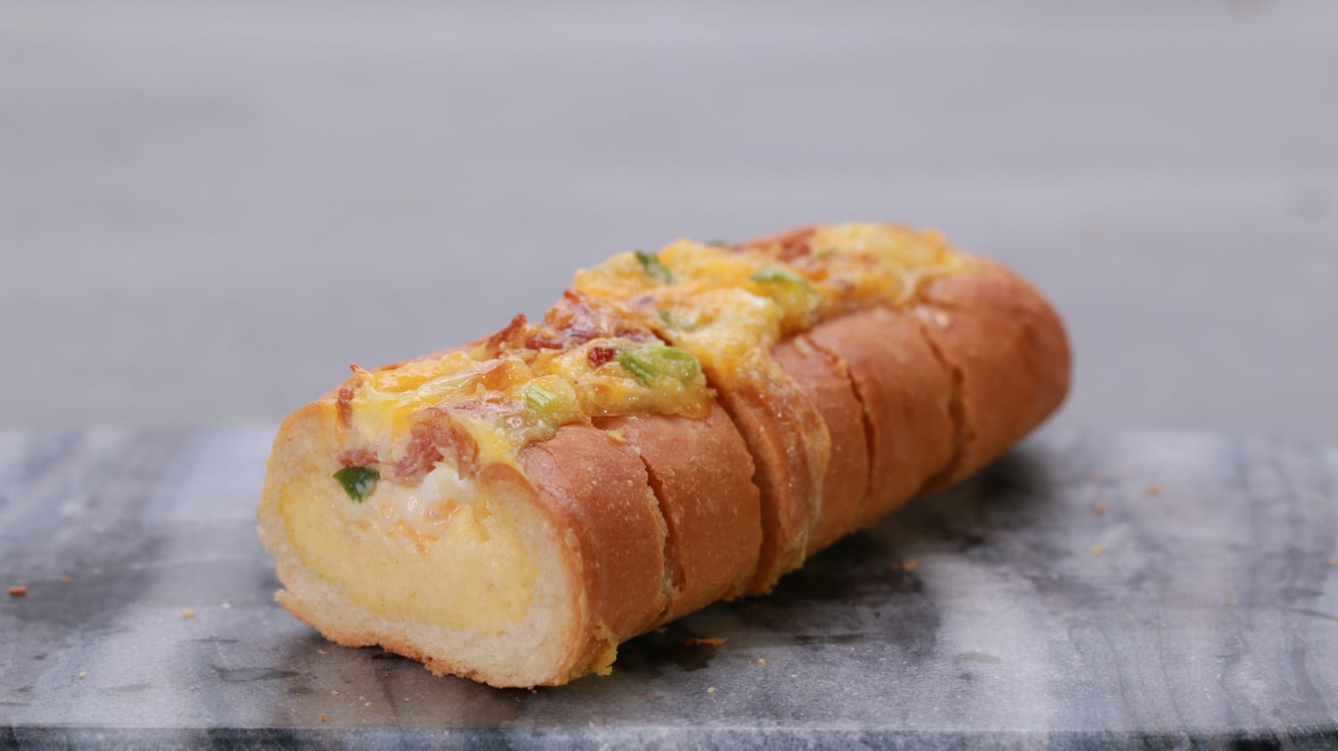 French Bread Breakfast Boat French Bread Breakfast Boat : Spoon mixture into the french bread boats and add the top.