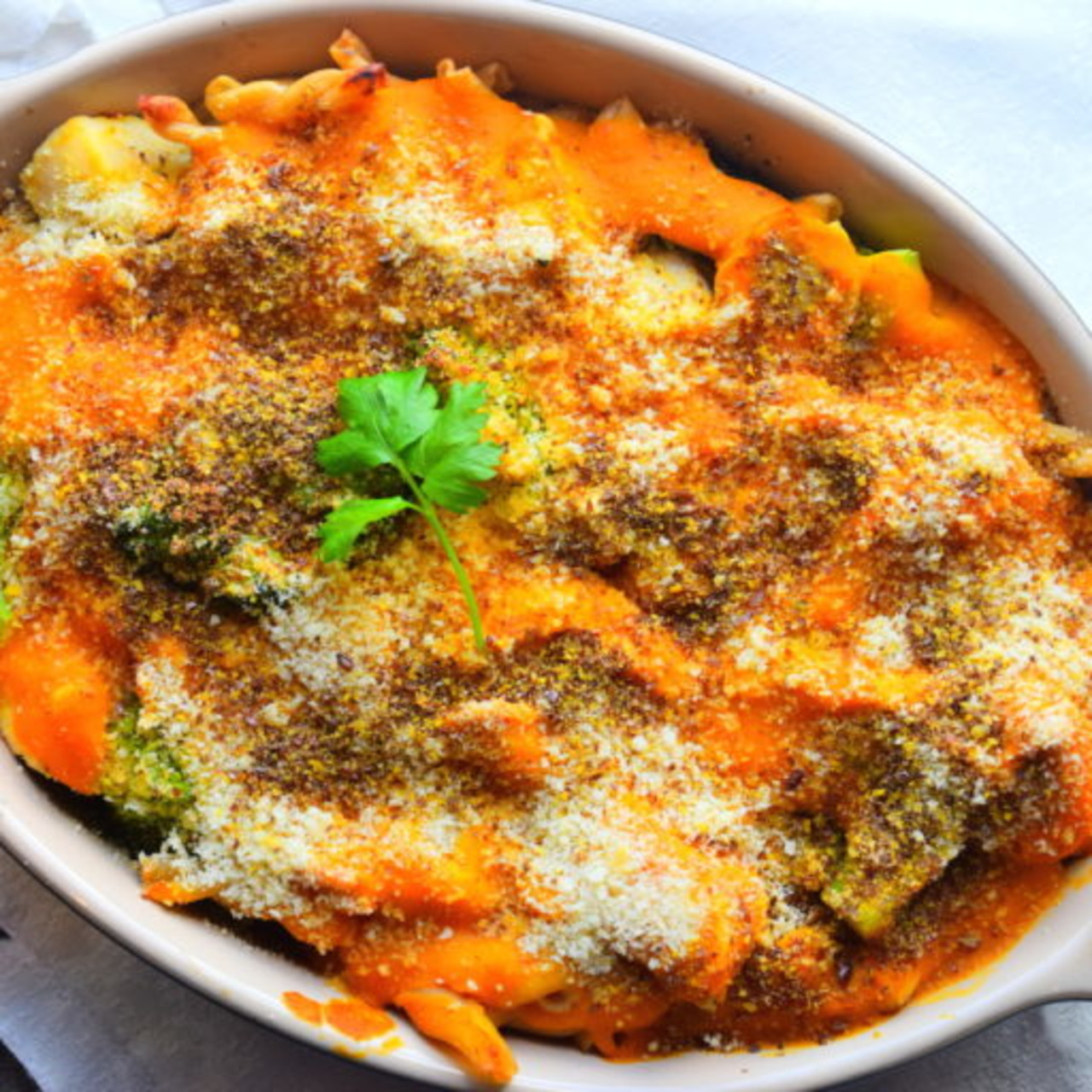 Healthy Chicken Pasta Bake Healthy Chicken Pasta Bake : Pour half of the pasta into a greased 11×7 inch or 9×13 inch (28x18 cm or 33x23 cm) baking dish.