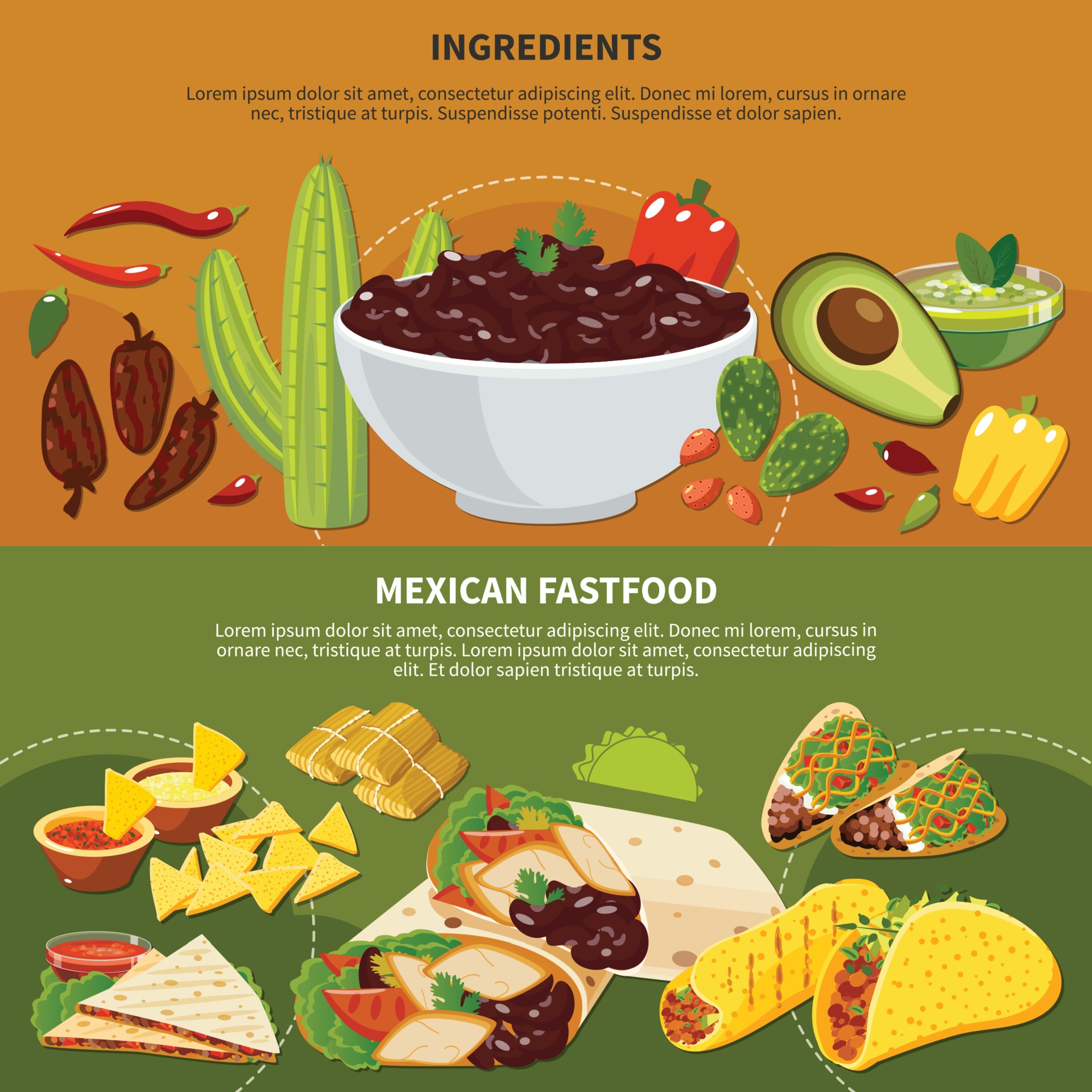 Ingredients Mexican Fastfood Banners Vector Illustration 2328630 Vector Art At Vecteezy - Learn the secrets of your local mexican market.