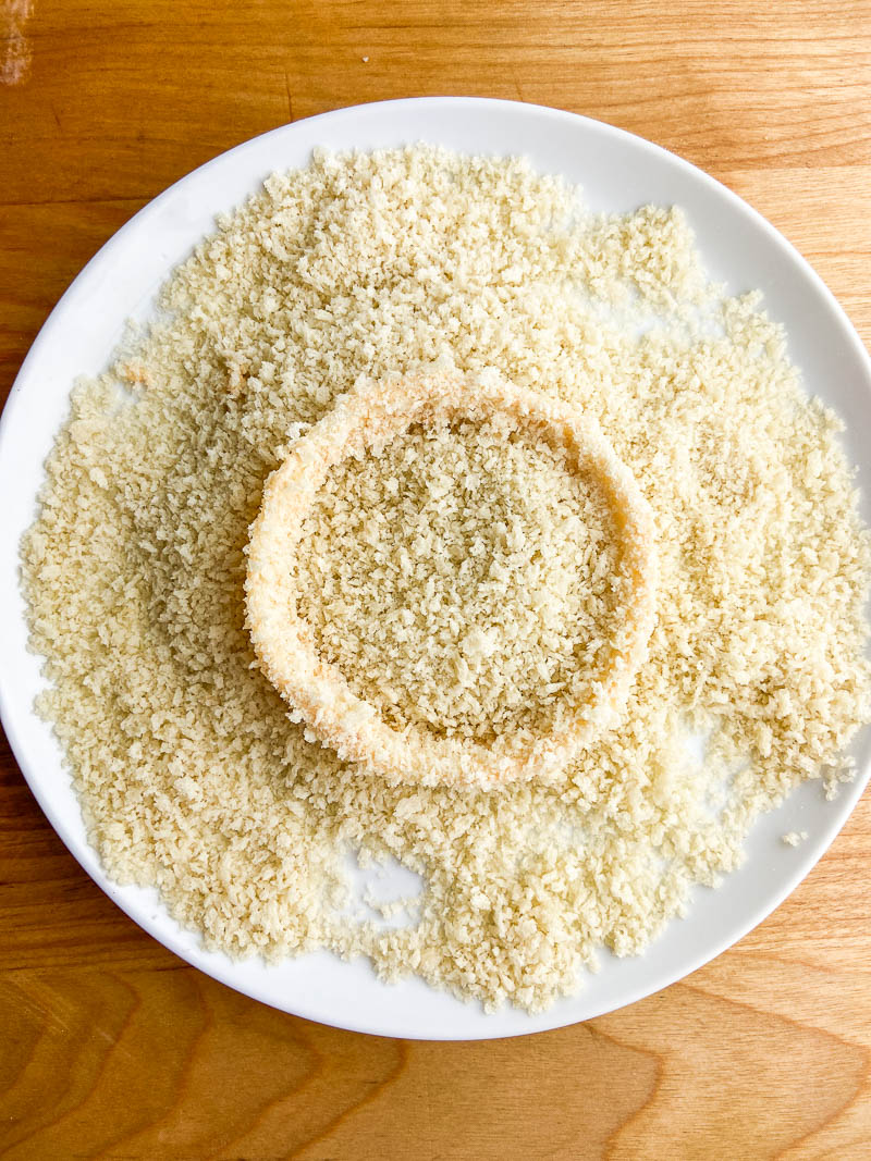 Onion Bread Crumbs Onion Bread Crumbs : Onion rings dipped in a seasoned light batter, then coated with panko bread crumbs & deep fried.