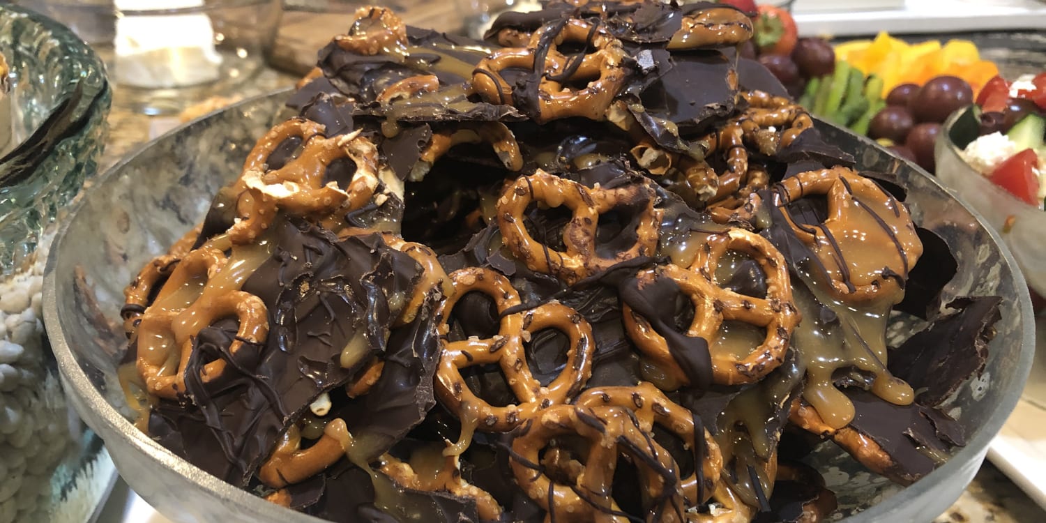 Salted Caramel Pretzel Salted Caramel Pretzel : Drizzle the caramel over the brownies and sprinkle lightly with the coarse salt.