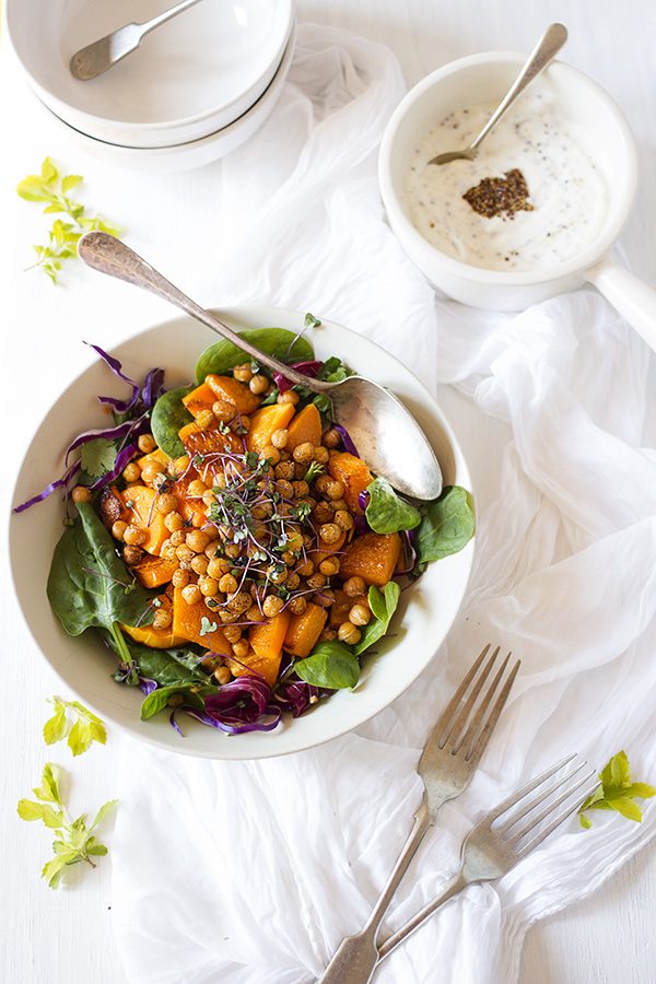 Warm Chickpea Spinach Salad Warm Chickpea Spinach Salad : Red onion, chickpeas, fresh rosemary, olive oil, maple.